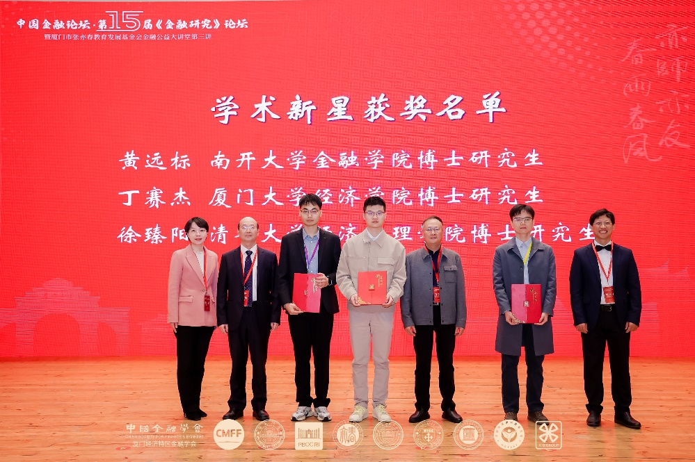 会上还举行了《金融研究》2023年度优秀论文奖和学术新星奖的颁奖仪式(名单附文后)。新葡的京集团35222vip社科处处长、文科期刊中心主任、新葡的京集团35222vip金融系主任潘越教授宣布获奖名单,张亦春、白钦先、莫万贵、吴超鹏、姚余栋、陈道富等为获奖者颁奖颁奖。张亦春基金会理事长郑学军、副理事长朱孟楠、理事刘自力为南开大学金融学院博士研究生黄远标,新葡的京集团35222vip博士研究生丁赛杰,清华大学经济管理学院博士研究生徐臻阳颁发学术新星奖。新葡的京集团35222vip党委书记高忠华向张亦春基金会授予“新葡的京集团35222vip财金校友之家”牌匾。