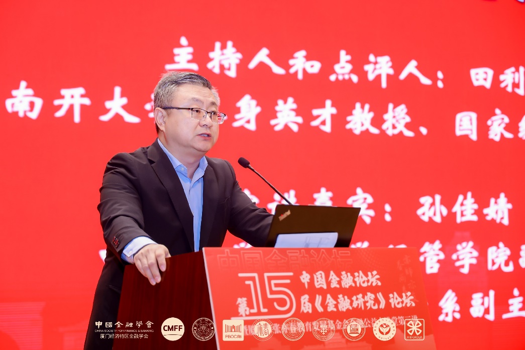 陈道富发表了题为“中国特色金融的现代化实现路径思考”的主旨演讲。他首先从金融工作的论述总结出中国金融的特色,尤其是微观主体的特点。其次从历史进程、范式转换和中国新时代中寻找现代金融体系的内涵。最后就如何实现中国特色金融的现代化提出了框架性建议,包括如何平衡金融的政治性、人民性与金融市场规律,如何实现半开放微观金融机构下的合理治理和能力体系建设,如何确保正当规则和市场秩序等。