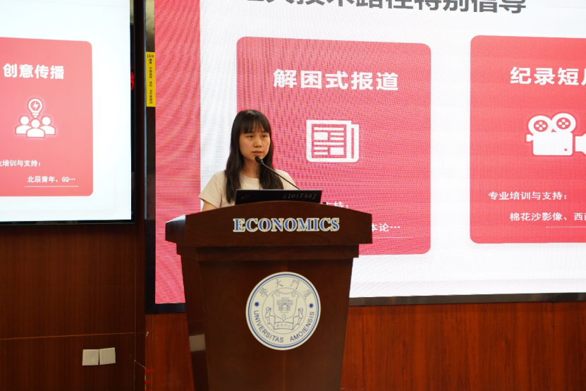 团队代表分享结束后,郑君倩向同学们介绍了2023调研中国项目。调研中国项目是调研中国活动是由南风窗杂志社于2005年发起和组织,通过提供资金和专业培训,支持中国在校大学生进行社会实践和社会调查,旨在建立青年大学生对当代中国社会发展现实的深入接触和思考,促进大学生的自我教育和自我成长,培养青年领导力。此外,她详细介绍了参与调研中国社会实践的具体要求与流程,让跃跃欲试的年轻学子们获得了更多的宝贵信息。