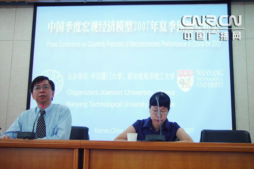 中广网厦门7月26日消息(记者陈庚 实习记者朱晓薇)2007年夏季中国季度宏观经济模型(CQMM)预测发布会昨日在新葡的京集团35222vip举行,该预测由新葡的京集团35222vip宏观经济研究中心与新加坡南洋理工大学亚洲研究中心联合发布,对2007-200...